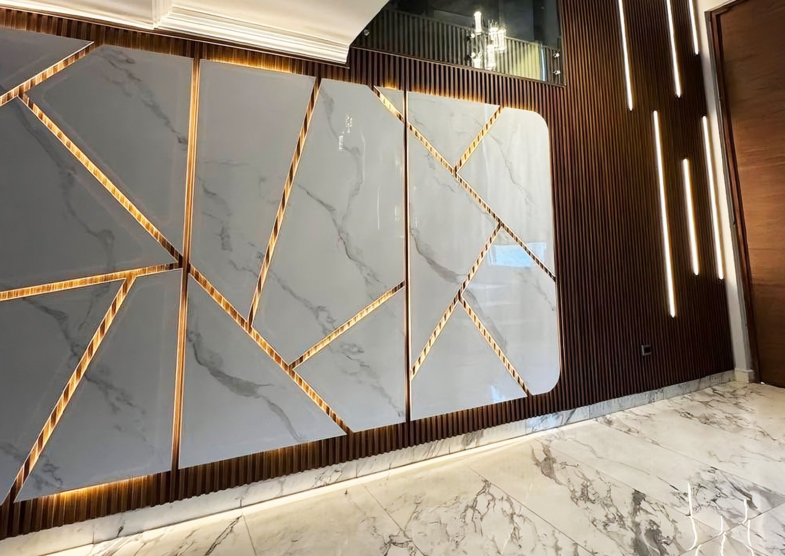 Placas ligeras de PVC con acabado tipo mármol, ideales para darle a tus muros un toque de elegancia. Resistentes a la humedad y fáciles de instalar, logran el look del mármol sin obras complicadas.