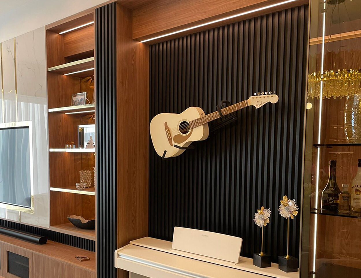 Recubrimientos decorativos para muros en distintos materiales, relieves y diseños (como paneles 3D). Añaden profundidad, textura y personalidad a cualquier espacio, convirtiendo una pared sencilla en un punto focal moderno.
